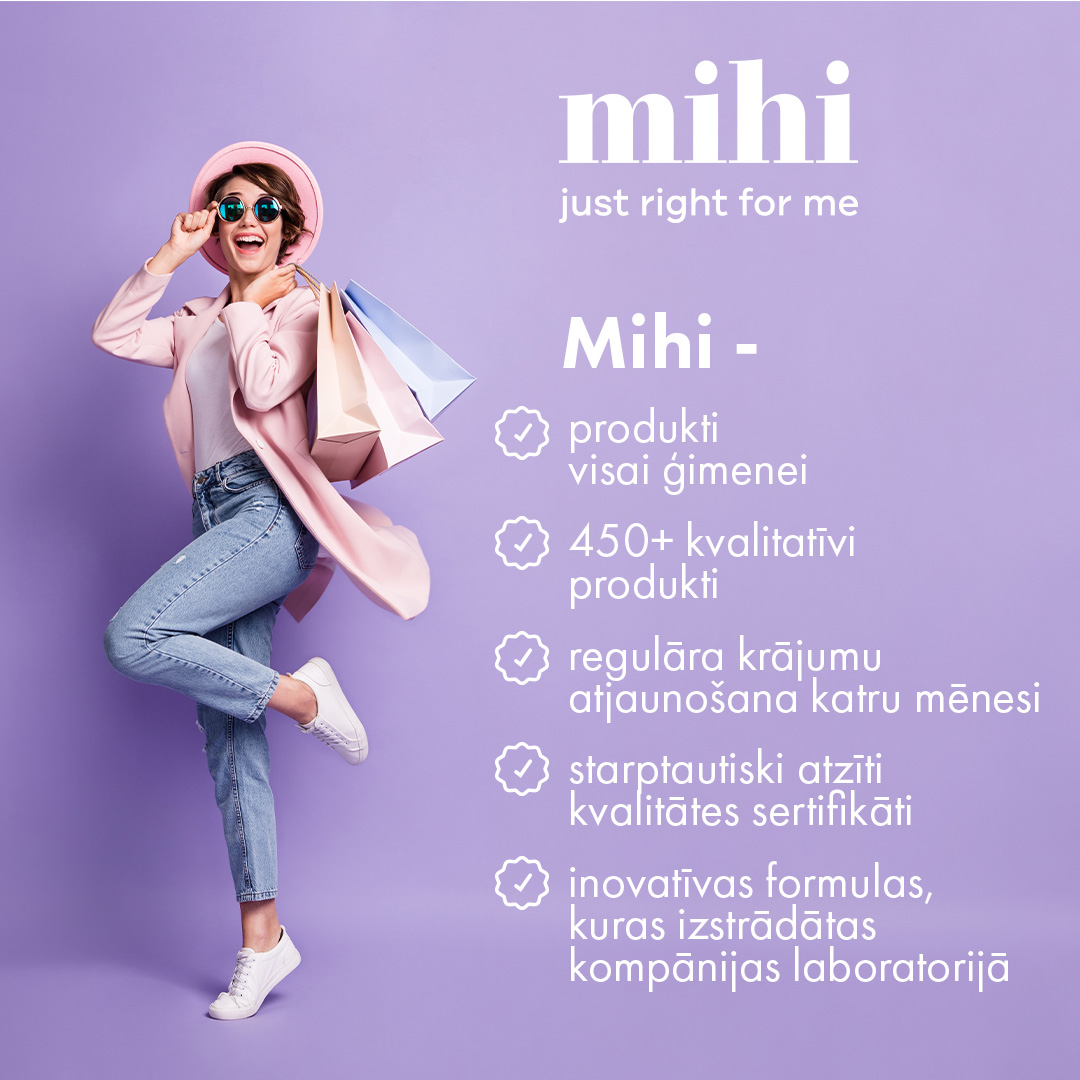 Manas mājas tīrība, veselība un skaistums - ar Mihi man tā ir kļuvusi nevis par greznību, bet gan par pieejamu realitāti! Videi draudzīgi produkti, kas ir droši cilvēkiem un videi. Plašs klāsts katrai gaumei un budžetam. Pasūtīšanas vieglums un ātra piegāde. Tici man, kad pamēģināsi, nevarēsi atteikties – pie labām lietām ātri pierod!